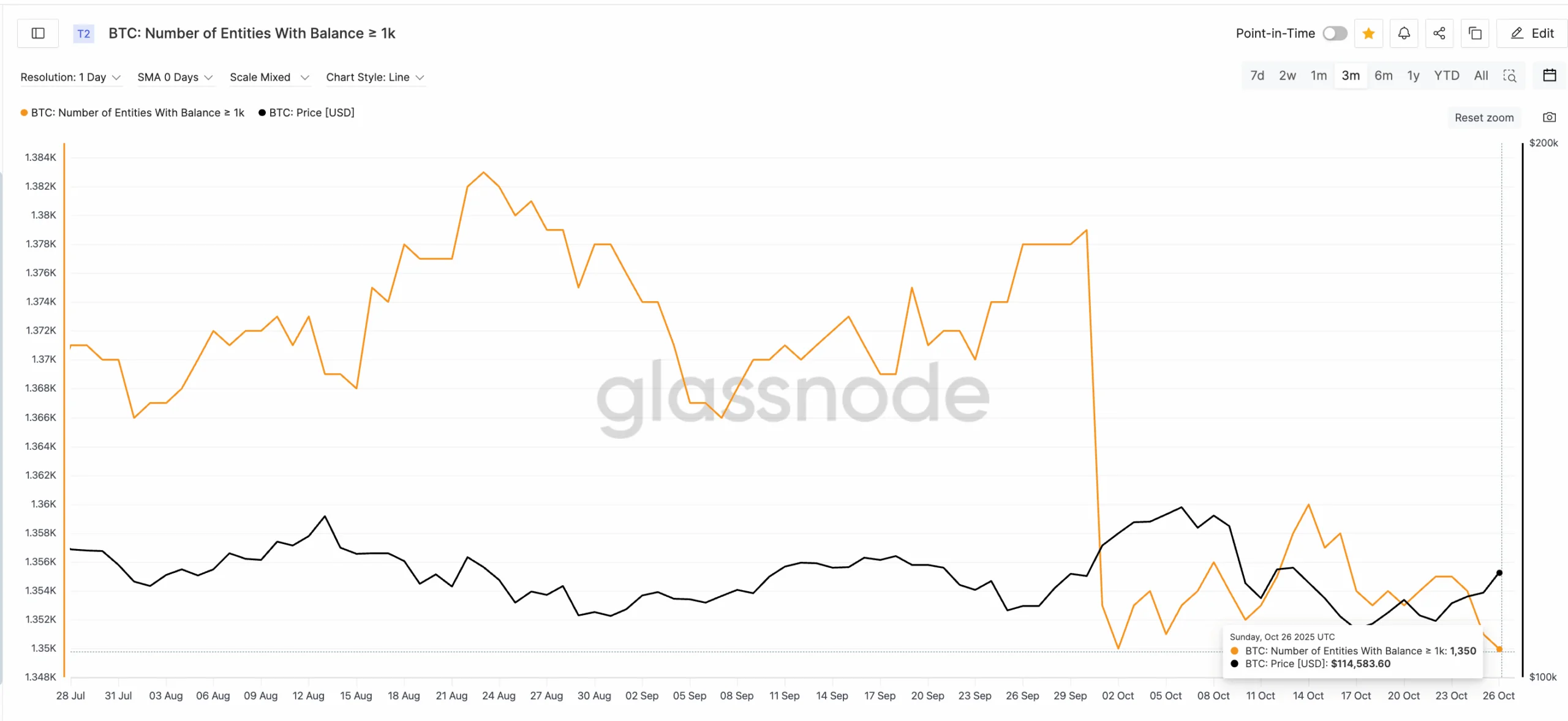 Cryptocurrency analysts note the positive dynamics of bitcoin BTC $111,276.00 Mezo Wrapped BTC 1.17% Market capitalization $59.33 million VOL. 24 hours $2.42 billion : over the past day, its price has added 3.2%, and over the past month — about 5%. Despite the growth of the flagship crypto market, several key indicators indicate a possible short-term correction before further growth. In particular, the activity of large cryptocurrency holders has decreased — the number of addresses with more than 1000 BTC has fallen to 1350, which is the lowest value in three months. This may indicate profit-taking after the exchange rate dropped from $ 115,000 to $ 106,400.