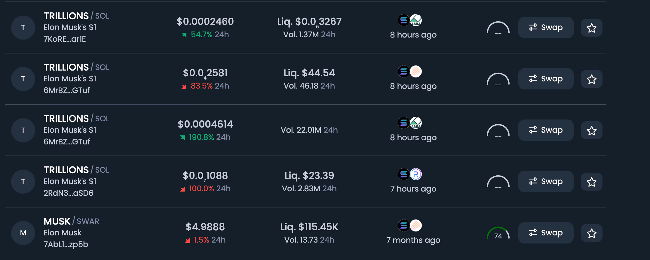 Tokens with the names «TRILLIONS» and «Elon's $ 1» appeared in the crypto space, which showed a sharp increase in trading volumes in a few hours. Most of them have no connection to Tesla or Musk, but this did not stop traders from buying new coins en masse in anticipation of short-term profits. Such a reaction is a typical example of a cult economy, where information impulses are transformed into market signals.
