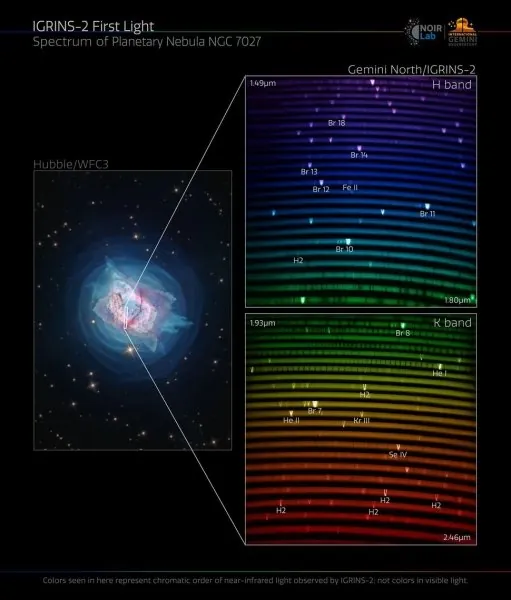 The IGRINS-2 spectrograph separates light into its component wavelengths, which helped scientists to understand the chemical composition of the planetary nebula.