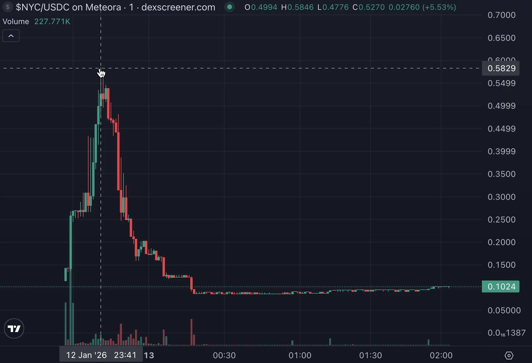 After the launch, the token’s price plummeted from $ 0.47 to about $ 0.10 in less than half an hour. Capitalization dropped from $ 500 million to $ 128 million. Analysts noted that the wallet associated with the coin’s creator first deposited 80 million NYC into the liquidity pool and then withdrew $ 2.5 million in USDC at the peak of the price, returning only $ 1.5 million after the fall.
