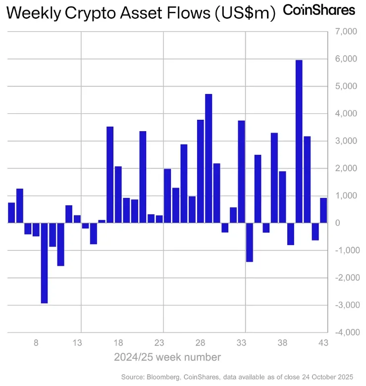 From October 17 to October 24, the volume of investments in cryptocurrency instruments grew by $ 921 million, which was one of the highest figures in recent months. According to a report by CoinShares, the positive trend was supported by macroeconomic data from the United States — the inflation rate was lower than analysts' expectations — which increased investors' appetite for risky assets.