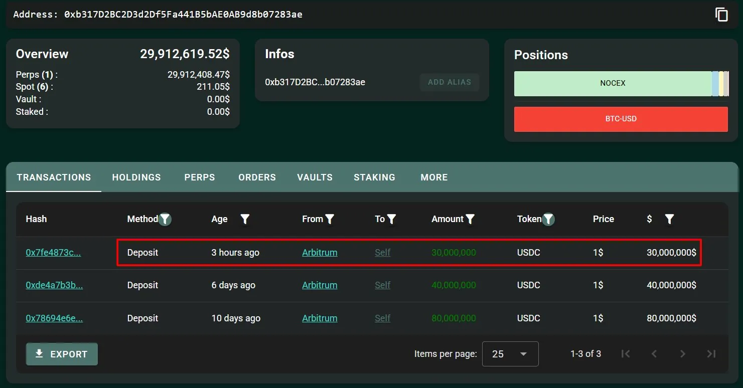 Last week, the same wallet opened new short positions after a short-term recovery in the bitcoin price. According to Lookonchain, the trader recorded them at around $ 115,783, holding 3,440 BTC in shorts with a total value of over $ 392 million. At the time, the trader’s unrealized profit was about $ 5.7 million. To finance these transactions, Hyperliquid transferred about $ 80 million in USDC to the exchange.