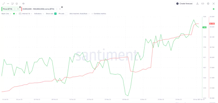 The ETH price briefly returned to the $ 1,900 mark for the first time since August 2022, and online data shows that whales are actively accumulating Ethereum ahead of the Shapella network upgrade.