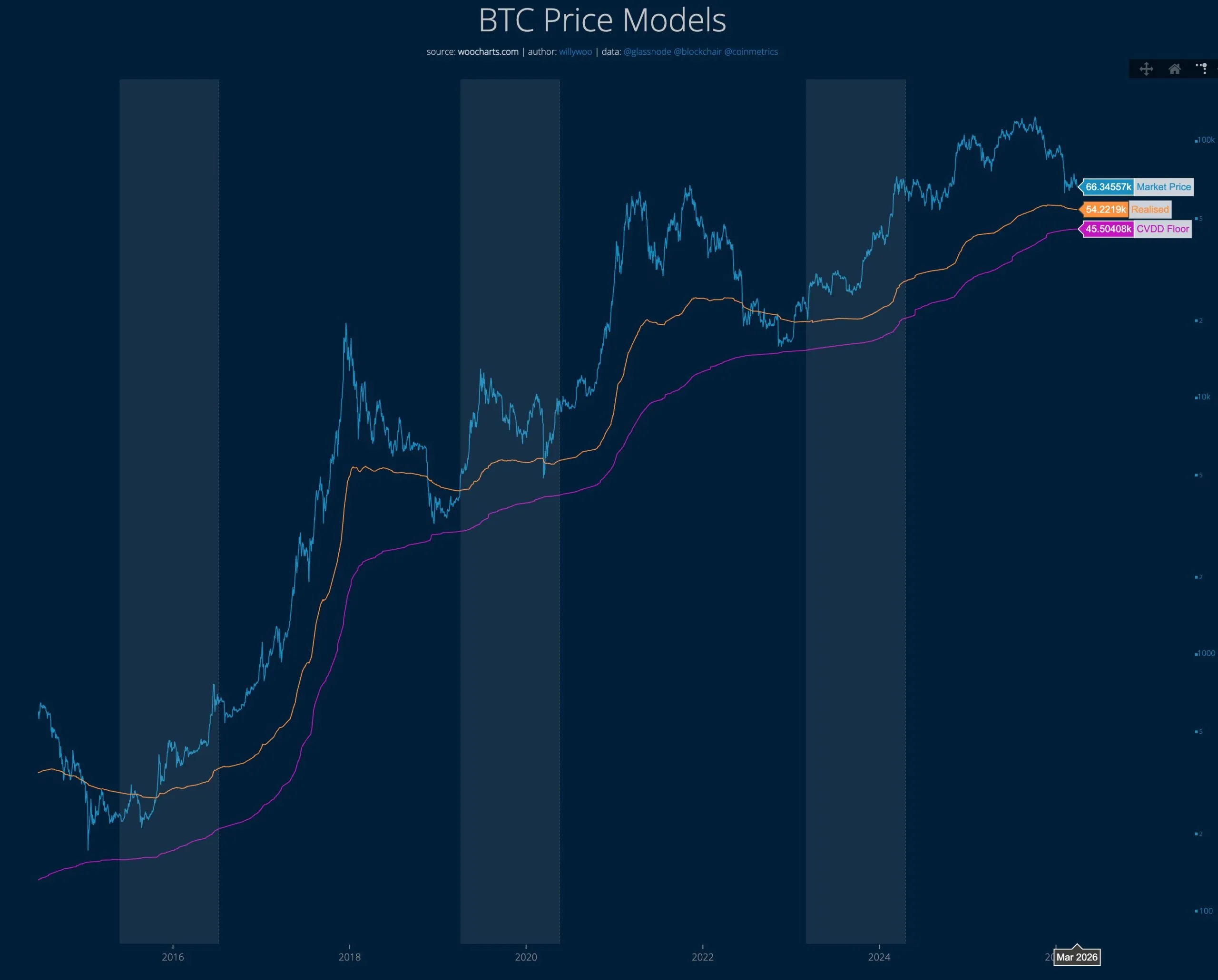 Wu drew attention to an indicator that demonstrates a correlation with the amount of capital saved in the first cryptocurrency. According to him, this indicator has been declining since November and currently estimates the value of BTC at around $ 54,200. He also singled out the CVDD Floor model, which signals a level of about $ 45,500.